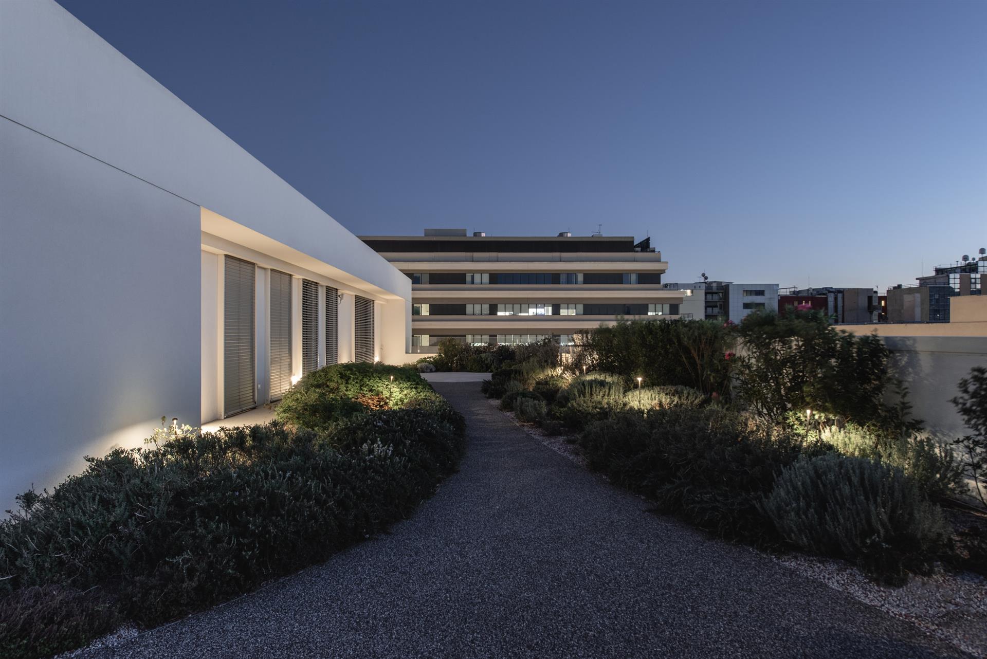 The lighting design focused on the balance between artificial light and the natural tones of the dusk sky, carefully avoiding any form of light pollution. Throughout the project, high energy efficiency luminaires with advanced LED technology were selected, ensuring low energy consumption and longevity.
